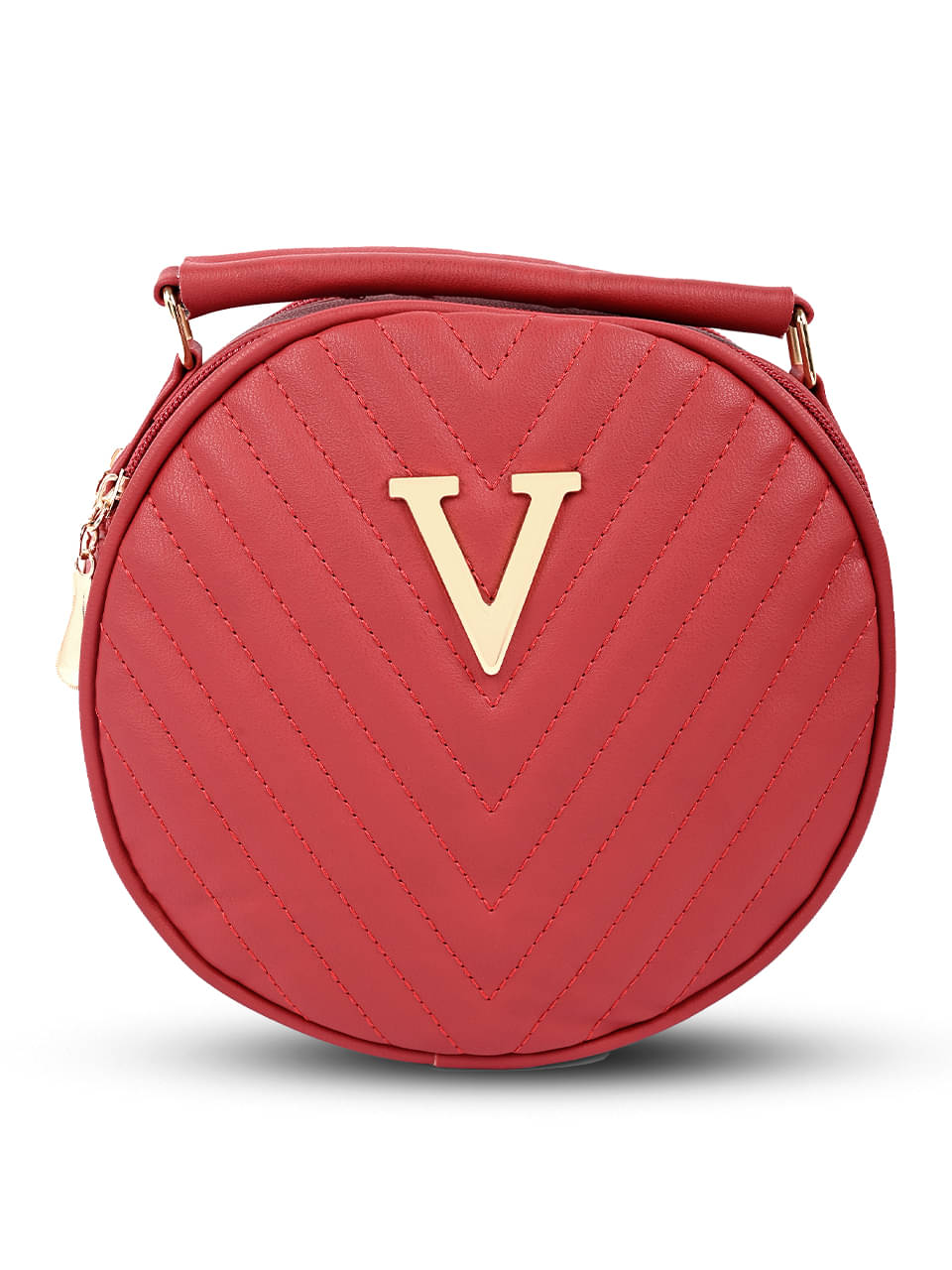 SAGEWARE:- Make a style statement with this Round Quilted Sling Bag for Women, available in a range of 5 elegant colors – Black, Pink, Maroon, Beige, and Green. Crafted from premium PU leather, this circular sling is designed for the modern woman who seeks both fashion and function in one piece. The bag’s signature golden ‘V’ logo and chevron quilted pattern elevate its appearance, making it a perfect match for both casual and dressy outfits. Whether you’re heading out for brunch, shopping, or a party, this versatile sling completes your look effortlessly. The detachable and adjustable strap allows you to use it as a crossbody or sling, while the padded top handle adds a handheld option for a chic twist. Its compact yet spacious interior easily fits your phone, cards, makeup, and small essentials. With high-quality zippers and golden hardware, this bag offers durability along with elegance. From street-style to festive wear, this bag adapts to your every mood and color preference. The variety of colors ensures there’s one for every outfit and occasion. Add a splash of sophistication to your collection or surprise a loved one with this stylish and practical gift.